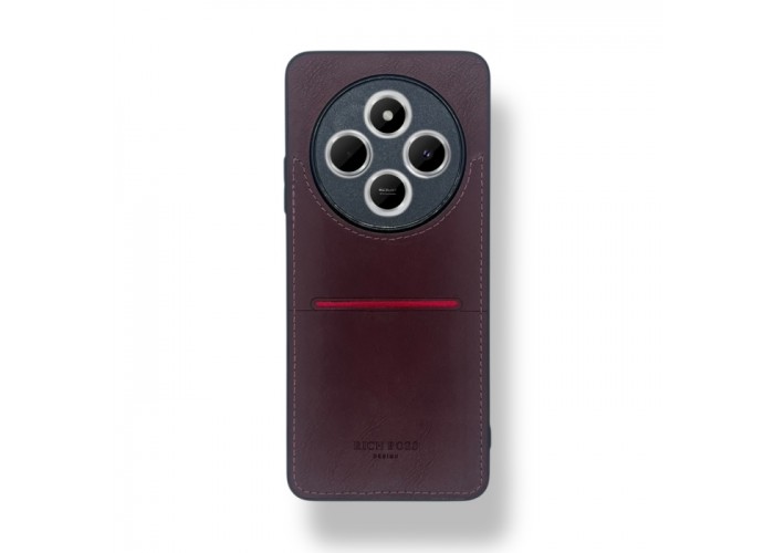 Redmi 14C Kartlıklı Lüx Deri Kılıf Koyu Kırmızı